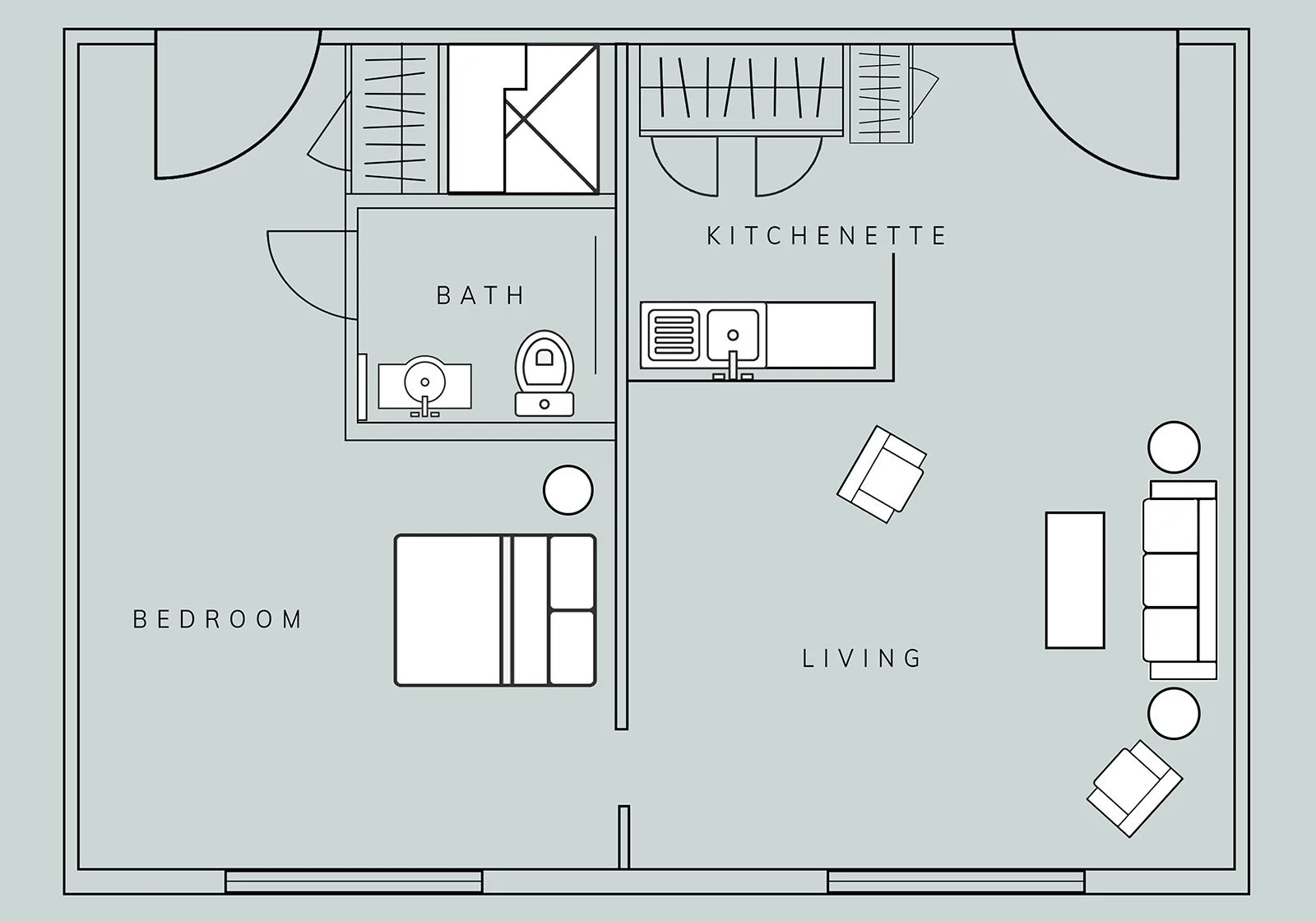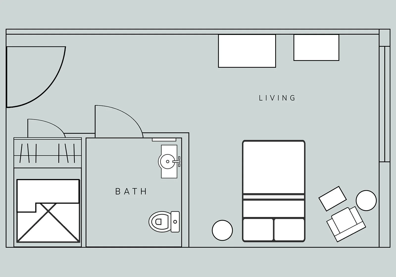 View three available options for our Assisted Living residents. We offer the Efficiency, Studio and One Bedroom apartments, each with their own bathroom, bedroom and open living space.